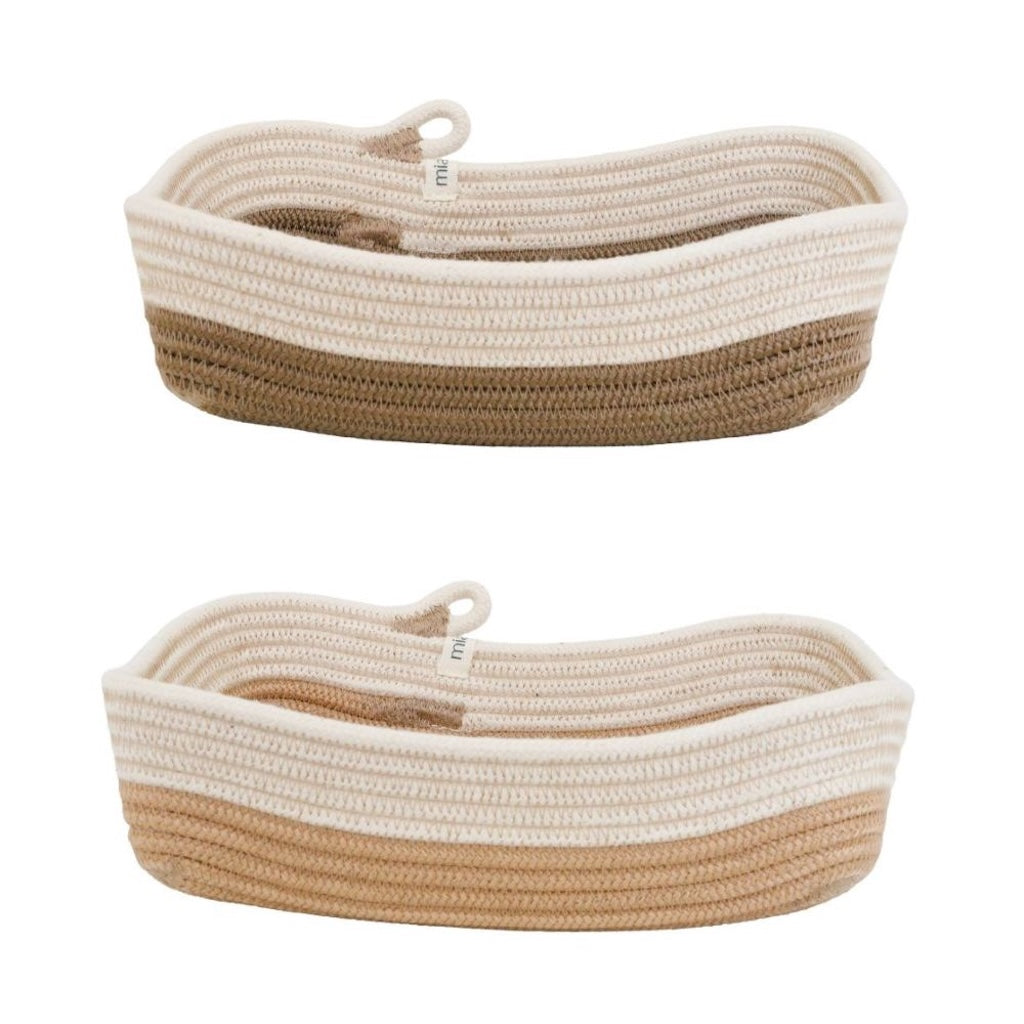The colour rope is a durable South African sourced polypropylene / polyester. The ivory rope is South African 100% cotton. Mia Mélange baskets are made from rope which we carefully sew together in a coiling technique. The cotton is grown locally in South Africa by farmers who are members of the Better Cotton Initiative (BCI).