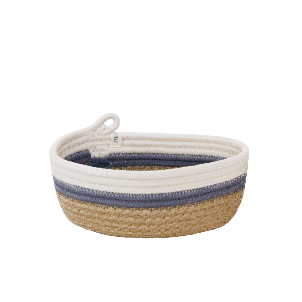 Use this cotton rope oval basket to keep your bedside table, office desk, or bathroom shelf tidy. Use it to neatly store stationery on your desk. This basket will hold pens, pencils, a punch and other small items. In the bathroom, use the basket to store things like cotton wool, nail polishes, creams, or makeup. You can also use this basket as a small bread basket at breakfast or at your next dinner party. At your front door, use this basket to neatly keep your keys in one place.